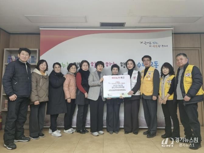 [경기뉴스원/경기뉴스1] | 구리시 수택2동 행정복지센터는 지난 1월 16일 수택2동 7개 기간단체가 모금한 적십자 특별회비 145만 원을 대한적십자사에 전달하는 전달식을 개최했다고 밝혔다.