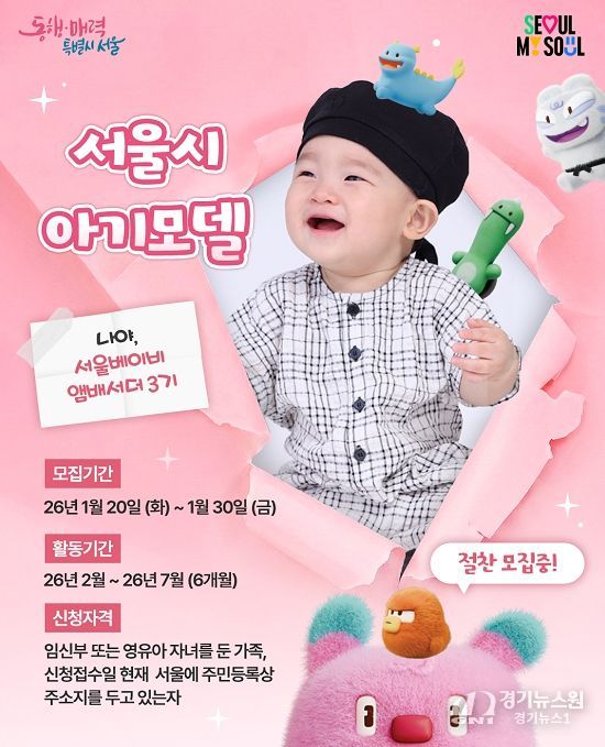 [경기뉴스원/경기뉴스1] | 생생한 육아 일상을 통해 아이를 키우는 기쁨과 그 과정에서 도움을 받을 수 있는 서울시의 다양한 임신·출산·육아 정책을 시민 눈높이에서 소개할 ‘서울베이비앰배서더’(baby ambassador)의 새 얼굴을 찾는다.