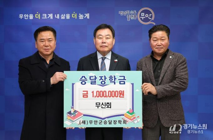 [경기뉴스원/경기뉴스1] | 무안군은 지난 1월 19일 무신회 박석현 회장이 지역 인재 육성을 지원하기 위해 (재)무안군승달장학회에 장학금 100만 원을 기탁했다고 밝혔다.