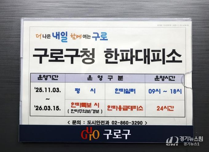 [경기뉴스원/경기뉴스1] | 구로구는 1월 20일부터 시작되는 강력 한파 예보에 따라 한파쉼터 및 응급대피소 운영 현황을 안내하고, 주민들의 적극적인 이용을 당부하고 나섰다.