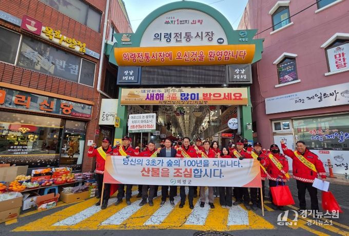 [경기뉴스원/경기뉴스1] | 의령군은 휴일이자 의령장날인 지난 18일 의령전통시장에서 표주업 부군수와 조희권 경제문화국장, 산림휴양과 직원 및 산불진화대원 등 30여 명이 참여한 가운데 산불예방 홍보 캠페인을 실시했다고 밝혔다.