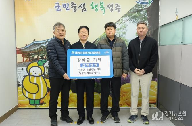 [경기뉴스원/경기뉴스1] | 지난 19일 성주군 쌀전업농회 회원 방경용 · 배점호 · 탁진열씨가 지역인재를 위한 장학금 각 1백만원씩 총3백만원을 (재)성주군별고을장학회에 기탁했다.