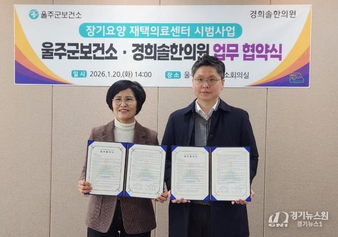 [경기뉴스원/경기뉴스1] | 울주군보건소가 20일 경희솔한의원과 장기요양 재택의료센터 시범사업 업무협약을 체결했다.