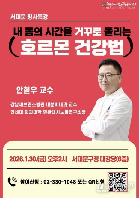 [경기뉴스원/경기뉴스1] | 서대문구가 연세대 의대 강남세브란스병원 내분비내과 안철우 교수를 초청해 이달 30일 오후 2시부터 90분간 구청 6층 대강당에서 ‘1월 서대문 명사 특강’을 개최한다.