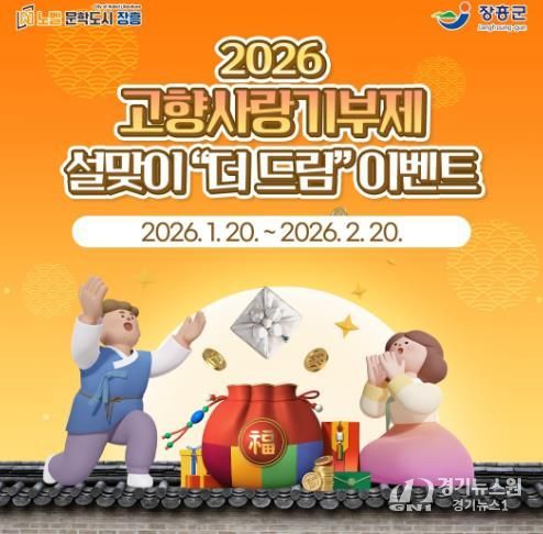 [경기뉴스원/경기뉴스1] | 장흥군은 설 명절을 앞두고 고향사랑기부제 활성화를 위해 1월 20일부터 2월 20일까지 ‘2026 설맞이 고향사랑기부제 더 드림 이벤트’를 진행한다.
