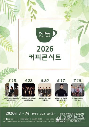 [경기뉴스원/경기뉴스1] | 인천문화예술회관(관장 홍순미)이 간판 브랜드 공연 〈커피콘서트'의 2026년 상반기 출연진을 공개한다.