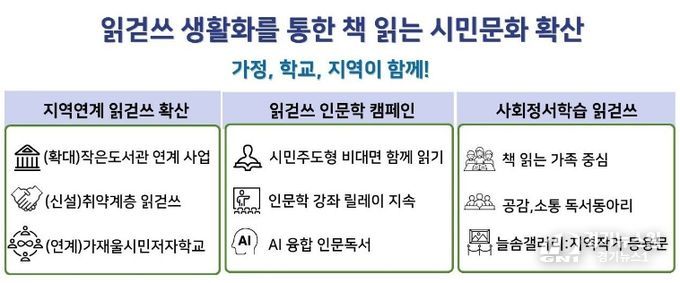 이와 함께 평생학습 및 개별 사업에 분산된 독서 취약계층 지원사업을 정비해, 독서교육 기반의 취약계층 맞춤형 교육을 신설할 예정이다.