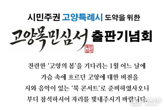 【경기 고양=경기뉴스원/경기뉴스1】 | 윤종은 민주사회혁신포럼 상임대표가 정치에세이 『고양목민심서』 출판기념회를 열고 시민주권에 기반한 고양특례시 비전을 제시했다.