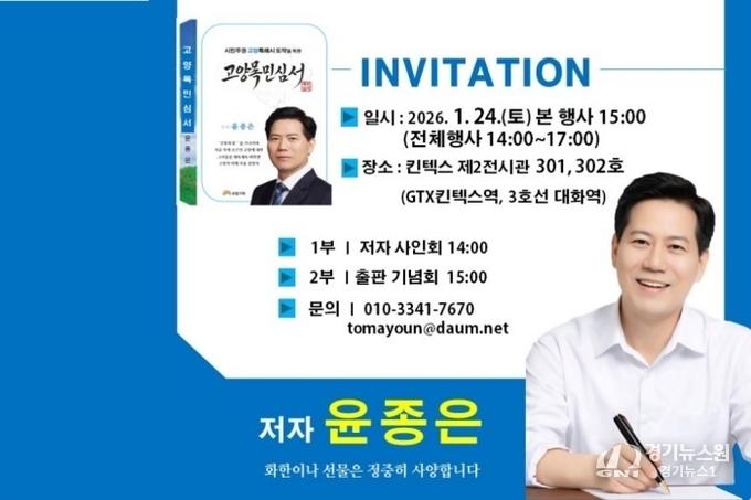5·18민주화운동 유공자인 윤종은 대표는 지난 1월 24일 오후 3시 고양시 킨텍스에서 출판기념회를 개최했다. 이날 행사는 윤 대표가 30년 넘게 살아온 고양시에 대한 애정과 도시 발전 구상을 시민들과 공유하는 자리로 마련됐다.