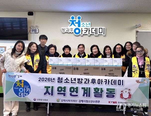 [경기뉴스원/경기뉴스1] | 김해시복지재단(대표이사 임주택) 김해시청소년수련관 방과후아카데미는 지난 22일, 진영 금병라이온스클럽(회장 이경자)과 연계하여 참여 청소년을 위한 위생용품 지원 전달식을 진행했다.