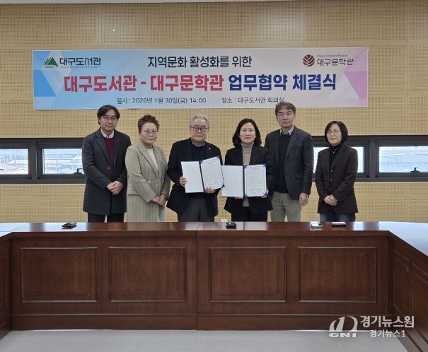 [경기뉴스원/경기뉴스1] | 대구도서관과 대구문학관은 시민을 위한 독서문화 분야 협력을 강화하고 상호 발전을 도모하기 위해 1월 30일 오후 2시, 대구도서관 회의실에서 업무협약을 체결했다.