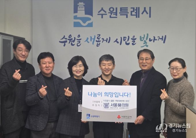 30일 수원시청에서 열린 전달식에는 윤영숙 수원시 시민복지국장, 정혜두 서울88의원 대표원장, 김영기 수원시립노인전문요양원장 등이 참석했다.