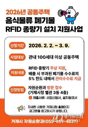 [경기뉴스원/경기뉴스1] | 거제시는 지난해에 이어 올해도 공동주택을 대상으로 음식물류 폐기물 RFID 종량기 설치 지원사업을 추진한다고 밝혔다.