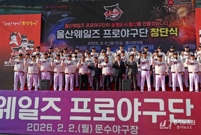 [경기뉴스원/경기뉴스1] | 울산광역시(시장 김두겸)는 2월 2일(월) 울산 문수야구장에서 '울산 웨일즈' 공식 창단식을 개최했다.