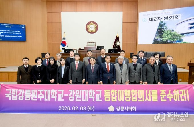 [경기뉴스원/경기뉴스1] | 강릉시의회는 3일 제327회 강릉시의회(임시회) 제2차 본회의에서 조대영 의원의 대표발의로 ‘국립강릉원주대학교-강원대학교 통합이행합의서 준수 촉구 성명서’를 발의했다.