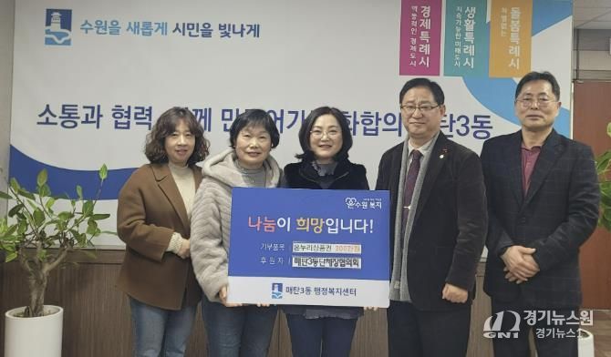 [경기뉴스원/경기뉴스1] | 수원시 영통구 매탄3동은 지난 3일 매탄3동 단체장협의회가 다가오는 설 명절을 맞아 관내 어려운 이웃들을 위해 누리상품권 300장(총 300만원 상당)을 기부했다고 밝혔다.