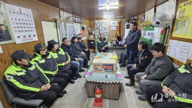 [경기뉴스원/경기뉴스1] | 동두천시 상패동 행정복지센터는 지난 3일 상패동 사회단체협의회와 함께 설 명절을 맞아 지역 안전을 위해 활동 중인 상패동 자율방범대 감악산지대를 방문해 대원들을 격려하고 위문품을 전달했다.