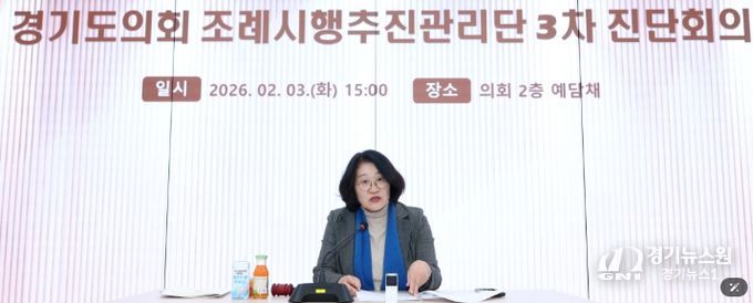 [경기뉴스원/경기뉴스1] | ‘경기도의회 조례시행추진관리단’ 공동단장을 맡고 있는 경기도의회 교육기획위원회 신미숙 의원(더불어민주당, 화성4)은 3일(화), 경기도의회 예담채에서 열린 조례시행추진관리단 제3차 진단회의에 참석하여 회의를 주재했다.