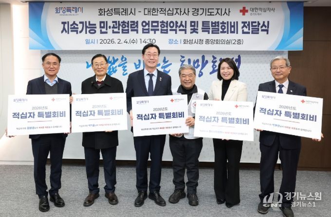 [경기뉴스원/경기뉴스1] | 화성특례시와 대한적십자사 경기도지사가 4일 화성시청에서 지속가능한 민·관협력 거버넌스 구축을 위해 업무협약을 체결했다.