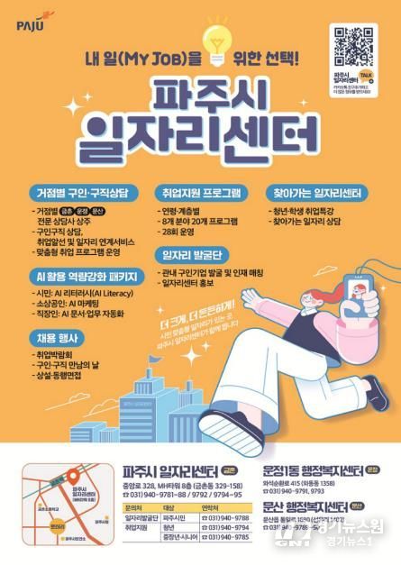 [경기뉴스원/경기뉴스1] | 파주시 일자리센터는 경기 둔화와 고용 불확실성이 지속되는 가운데 시민의 안정적인 취업과 지역 고용 기반 강화를 위해 녪년 사업 운영계획’을 수립하고, 시민 중심의 종합형 취업지원 서비스를 본격 추진한다.