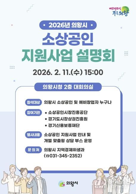 [경기뉴스원/경기뉴스1] | 의왕시가 2월 11일 오후 3시, 시청 대회의실에서 ‘2026년 소상공인 지원사업 설명회’를 개최한다.