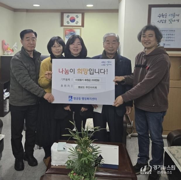 [경기뉴스원/경기뉴스1] | 지난 4일 수원시 팔달구 행궁동 주민자치회는 지역 내 취약계층을 돕기 위해 후원금 200만원을 행궁동 행정복지센터에 기부했다.