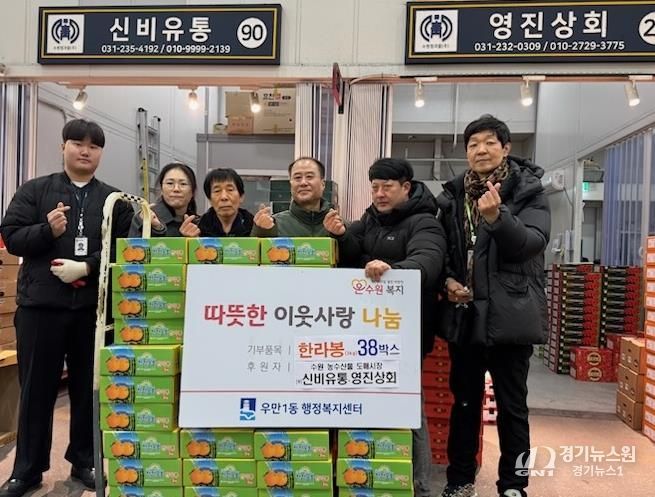[경기뉴스원/경기뉴스1] | 수원 농수산물도매시장 내 신비유통‧영진상회에서 설 명절을 앞두고 우만동 이웃들에게 따뜻한 정을 전했다고 밝혔다.