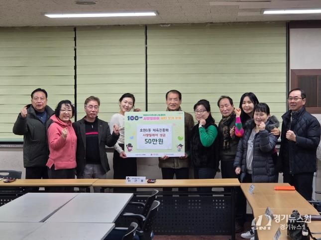 [경기뉴스원/경기뉴스1] | 의정부시 호원1동주민센터는 2월 2일 호원1동 체육진흥회가 ‘100일간 사랑릴레이 배턴 잇기’에 동참해 성금 50만 원을 기부했다고 밝혔다.