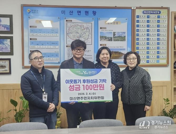[경기뉴스원/경기뉴스1] | 연천군 미산면주민자치위원회는 지난 4일 지역 내 어려운 이웃을 돕기 위해 성금 100만원을 미산면지역사회보장협의체에 기탁했다.