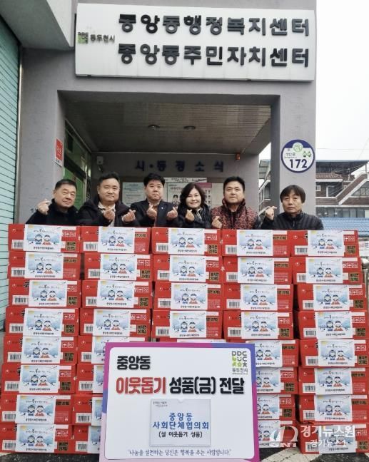 [경기뉴스원/경기뉴스1] | 동두천시 중앙동 사회단체협의회는 지난 4일 설 명절을 맞아 중앙동 관내 취약계층 가구를 위한 이웃돕기 물품으로 라면(20개입) 220여 개를 중앙동 행정복지센터에 전달했다.