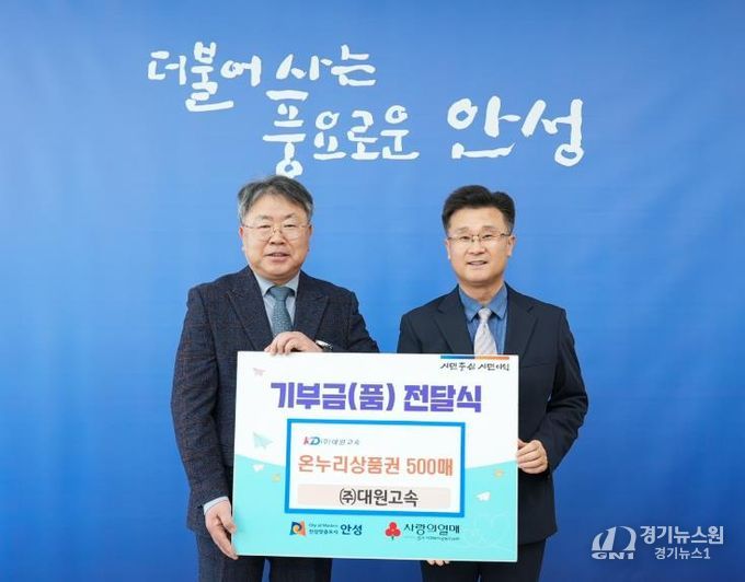 [경기뉴스원/경기뉴스1] | 안성시는 2월 3일 대원고속으로부터 지역의 어려운 이웃을 돕기 위한 온누리상품권 500매(500만 원 상당)를 전달받았다고 밝혔다.