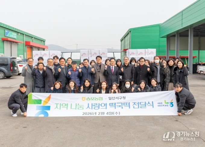 [경기뉴스원/경기뉴스1] | 고양특례시 일산서구는 지난 4일 송포농협과 설 명절맞이 ‘사랑의 떡국떡’ 전달식을 열고, 떡(4kg) 500박스를 전달받았다고 5일 밝혔다.
