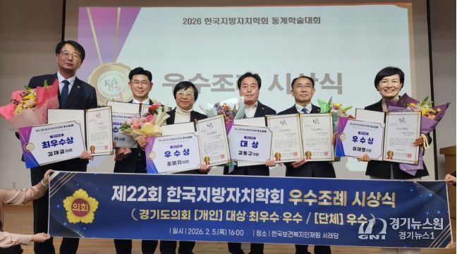 [경기뉴스원/경기뉴스1] | 경기도의회가 5일 ‘제22회 한국지방자치학회 우수조례 시상식’에서 개인부문 대상과 단체부문 우수상 등 총 8건을 수상하며 전국 최고의 입법 역량을 입증했다.