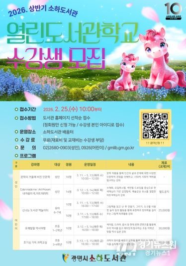[경기뉴스원/경기뉴스1] | 광명시 소하도서관이 ‘2026년 상반기 열린도서관학교’ 수강생을 모집한다.