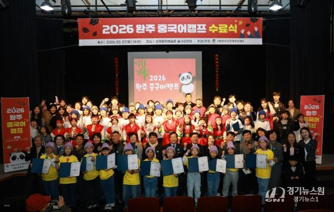 이번 수료식은 초등학교 2학년부터 중학교 1학년까지 학생 43명이 참여한 중국어캠프의 교육 성과를 공유하는 자리로, 유희태 완주군수와 유의식 군의회 의장, 재단 이사, 학부모 등 100여 명이 참석해 학생들의 성장을 함께 축하했다.