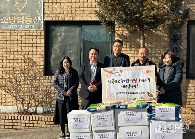 [경기뉴스원/경기뉴스1] | 경기도광주하남교육지원청은 설 명절을 맞아 9일(월), 광주시 소재 장애인 거주시설 '소망의 동산'을 방문해 이웃사랑을 실천하는 나눔 행사를 진행했다.