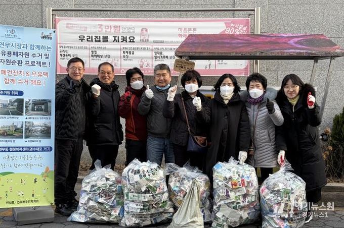 [경기뉴스원/경기뉴스1] | 수원시 장안구 연무동은 지난 6일, 반사모(반딧불이 연무시장 사랑 소모임)와 함께 연무시장 일원에서 유용생활폐자원을 수거했다.