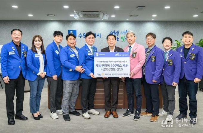 [경기뉴스원/경기뉴스1] | 국제로타리 3750지구 수원4지역협의회가 “수원시 취약계층에 전달해 달라”며 수원시에 ‘새빛꾸러미’ 100상자(총 300만 원 상당)를 후원했다.