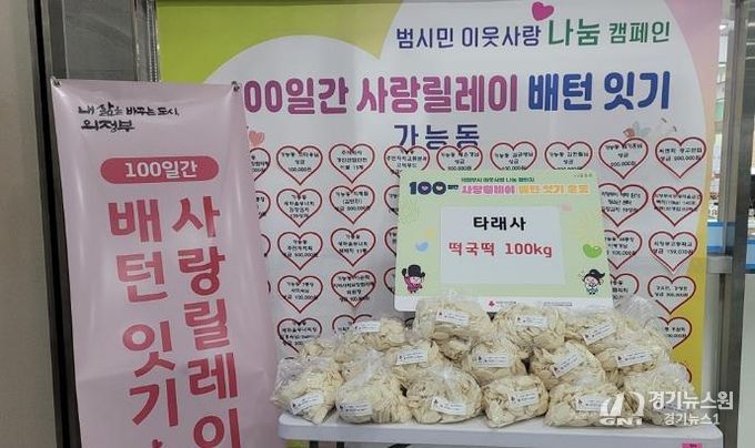 [경기뉴스원/경기뉴스1] | 의정부시 가능동주민센터는 2월 9일 한국불교태고종 타래사가 떡국떡 100kg를 기탁했다고 밝혔다.