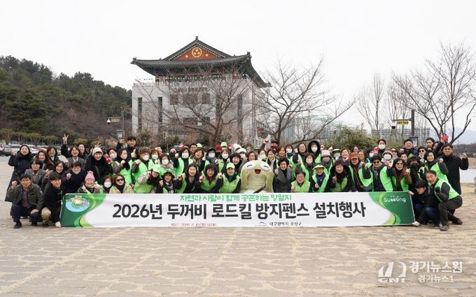 [경기뉴스원/경기뉴스1] | 대구 수성구는 지난 10일 전국 최대 두꺼비 집단 산란지인 욱수동 망월지 일대에서 ‘두꺼비 로드킬 방지 펜스 설치’ 행사를 실시했다.
