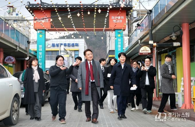 김 지사는 먼저 칠성면 도정리 일원의 ‘칠성마을 골목박물관거리’ 조성 현장을 찾았다.