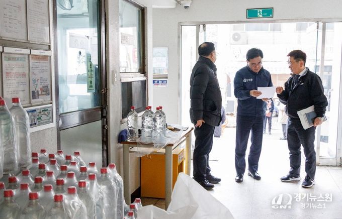 [경기뉴스원/경기뉴스1] | 진교훈 서울 강서구청장이 11일 오후 단수로 불편을 겪고 있는 방화동의 한 아파트를 찾아 주민 피해 현황과 복구 진행 상황을 점검했다.
