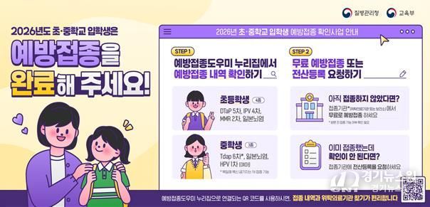 [경기뉴스원/경기뉴스1] | 구로구가 2026년 초·중학교 입학생을 대상으로 예방접종 확인사업을 실시하고, 입학 전 필수 예방접종 완료를 당부했다.