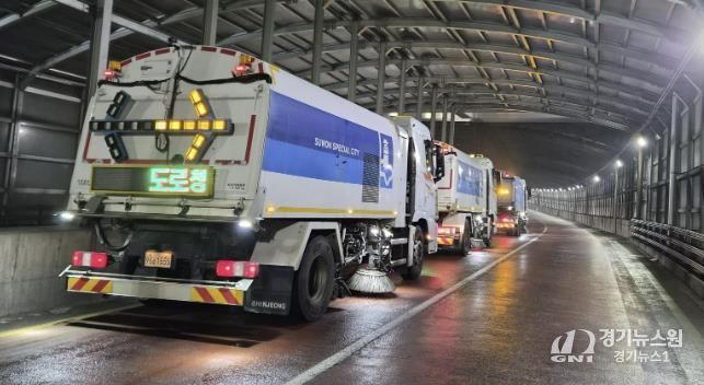 [경기뉴스원/경기뉴스1] | 수원시 영통구는 지난 11일 설 명절을 맞아 귀성객들에게 쾌적하고 안전한 도로 환경을 제공하기 위해 주요 도로 구간에 대한 노면 청소차량 합동 작업을 실시했다.