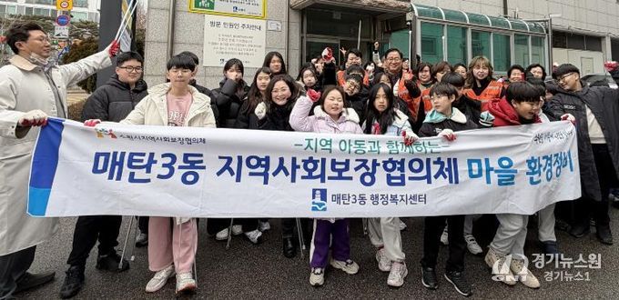 [경기뉴스원/경기뉴스1] | 영통구 매탄3동은 지난 11일 지역사회보장협의체, 지역아동복지센터, 관계 공무원 등 40여 명이 참여해 환경 정비 활동을 실시했다.