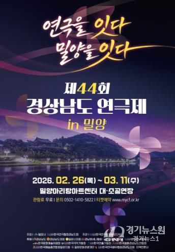 [경기뉴스원/경기뉴스1] | 밀양시는 경남 연극인들의 최대 축제이자 경연대회인 ‘제44회 경상남도 연극제’가 오는 2월 26일부터 3월 11일까지 14일간 밀양아리랑아트센터에서 개최된다고 밝혔다.
