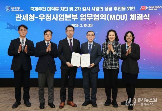 [경기뉴스원/경기뉴스1] | 관세청과 과학기술정보통신부 우정사업본부(본부장 직무대리 곽병진)는 2월 10일 서울세관에서 국제우편을 통한 마약류 반입을 원천 차단하기 위해 '국제우편 마약류 차단 및 2차 검사 사업의 성공 추진을 위한 업무협약(MOU)'을 체결했다.