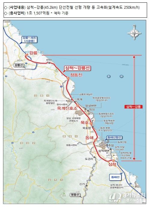 [경기뉴스원/경기뉴스1] | 국토교통부는 2월 12일 동해선 삼척-강릉 철도 고속화 사업과 부산도시철도 정관선 건설사업이 사업 타당성을 확보하여 예비타당성조사를 통과했다고 밝혔다.