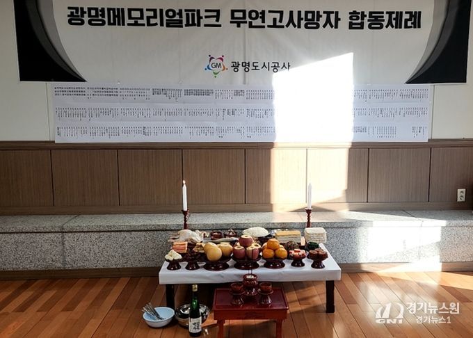 [경기뉴스원/경기뉴스1] | 광명도시공사는 17일 설을 맞아 일직동 메모리얼파크 무연고단에 안치된 영령들의 외로운 넋을 기리는 합동제례를 봉행했다.