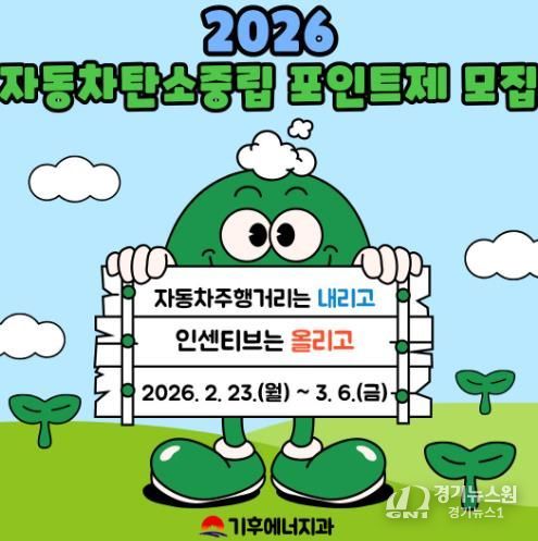 [경기뉴스원/경기뉴스1] | 김천시가 시민들의 자발적인 온실가스 감축을 유도하기 위해 '2026년 자동차 탄소중립포인트제'참여 차량 450대를 오는 2월 23일부터 3월 6일까지 선착순 모집한다고 밝혔다.